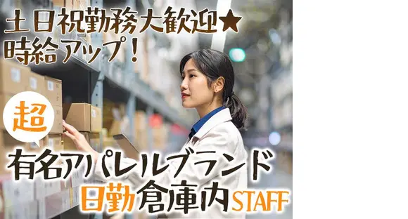 土日祝出勤大歓迎【超有名アパレルブランド】の物流倉庫スタッフ☆30名の大量募集中!未経験大歓迎◎時短勤務・勤務週2~OK★時給アップ◎