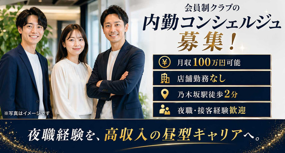 【夜職卒業×月収100万可】店舗勤務なし!会員制クラブの内勤コンシェルジュ募集!接客経験者歓迎!未経験OK!