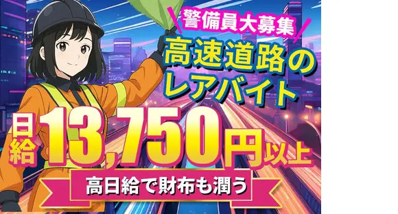 【“安心”という宝を守り抜く!】高速道路でのレア求人☆高日給でガツガツ稼げる/$日給13,750円以上$日給保障もしっかり◎未経験・シニアOK☆週1から勤務OK