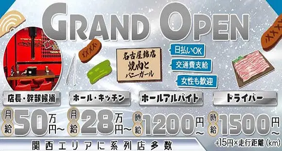 関西からはじまり 今や東京の人気エリア『名古屋』に…! 系列店を持つ話題の人気店から 新たな店舗が満を持して誕生します◎ この度の開店にともない オープニングスタッフを大募集中!