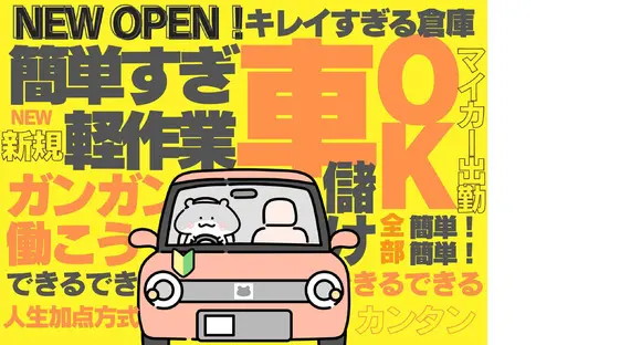 【オープニングスタッフ】有名倉庫で簡単3STEP作業★週3~OK!最高時給1688円<車通勤OK>日払いOK