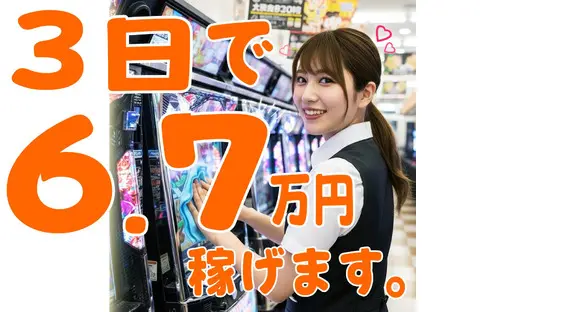 とにかく稼げるパチンコアルバイト!難しいことナシ!シフト削られる心配もナシ!日払いOKだから金欠の心配もナシ!3日間の特別時給3000円で6.7万円稼げます◎