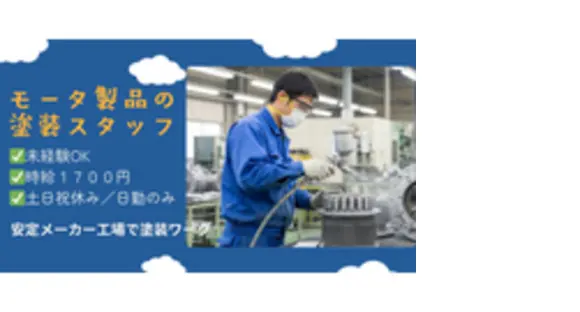 モータ製品の塗装スタッフ/未経験OK/時給1700円/土日祝休み/日勤