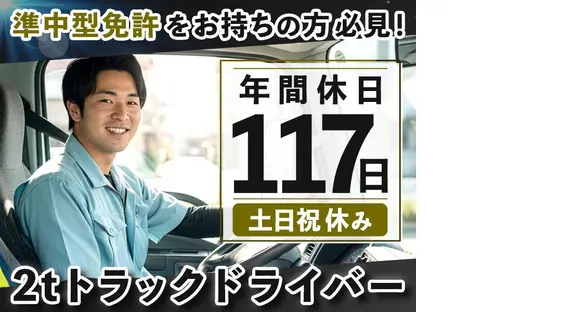 【急募!】しっかり休める<2tドライバー>!準中型免許があればOK/学歴・性別一切不問♪
