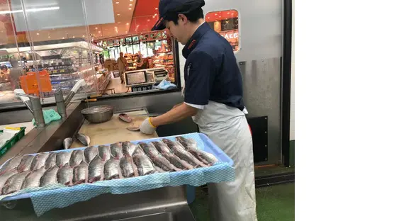 スーパーの魚コーナーで、商品製造・陳列・販売などをする仕事です。