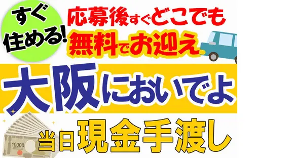 - ◆休日は大阪の街を満喫 話題のスポットに行ったり 大阪グルメの食べ歩きなども◎ \大阪で新生活はじめよう!/ 勤務地:大阪・関西一円 ★全国どこからでも応募OK! 大阪までの交通費は【0円】 お近くまでお迎えに行きますよ! ★すぐに住める【寮完備】 家具家電つき・ご飯も3食付いて快適♪ Wi-Fiもあり!カバンひとつで入居OK! ★休日も楽しめる好立地 大阪の中心地までスグ! …