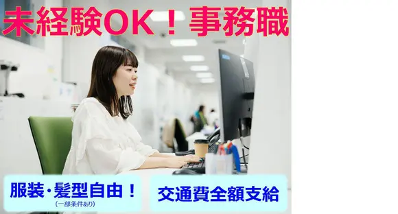 短期募集【電話なし★営業事務サポート】週3~&土日祝休みでサクッと自分のペースで稼げる◎未経験・扶養内勤務OK!髪色髪型自由&ピアス・ネイルもOK◎
