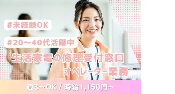 \夕方からの4Hのみ★週3日~OK/時給1150円~!駅チカ◎服装・髪型自由!未経験OK♪生活家電の修理受付窓口、オペレーター業務のお仕事です!